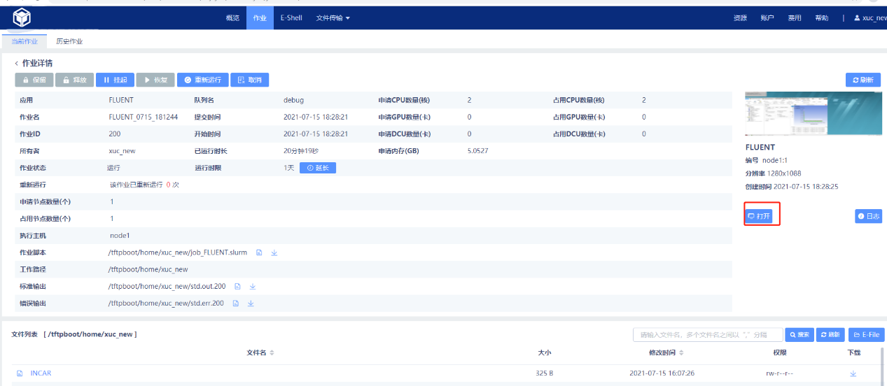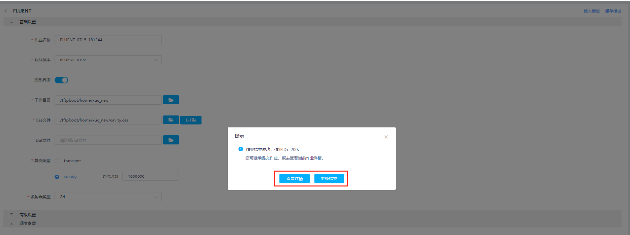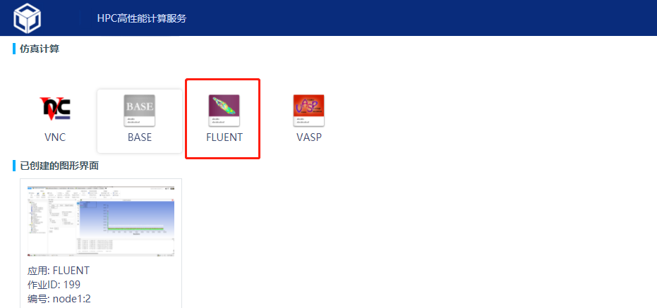 2.在服务列表选择FLUENT应用模板,可进入作业提交页面